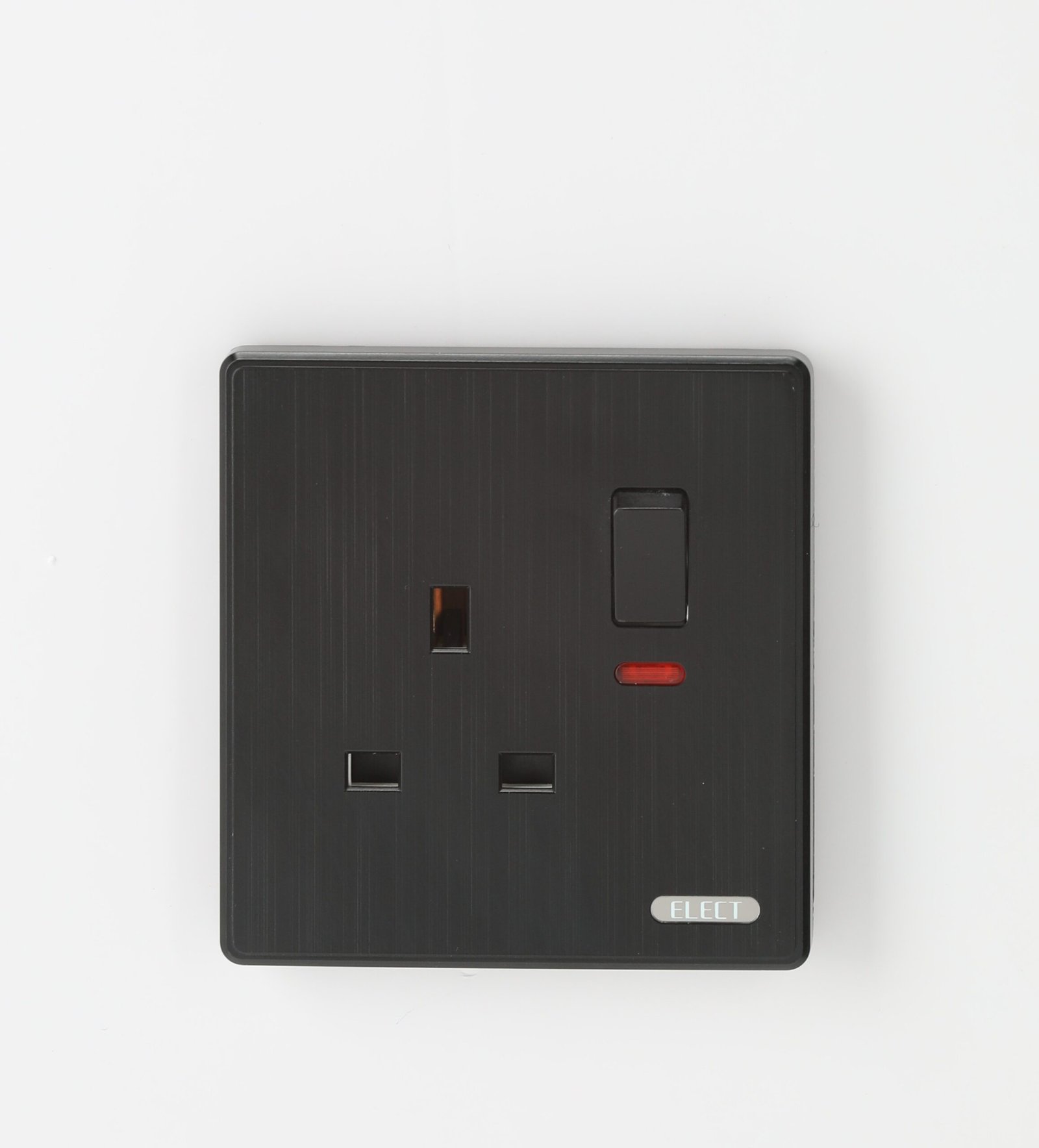 فيش كهرباء 13 أمبير مزوّد بمفتاح تشغيل ولمبة بيان من ELECT، مصمم لتوفير أمان أعلى وسهولة تحكم كاملة في تشغيل وفصل التيار الكهربائي. يتميز بلونه الأسود المطفي الذي يناسب الديكورات العصرية، ومناسب للاستخدام المنزلي والمكتبي.
